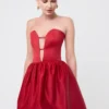 The voluminous balloon skirt accentuates the waistline and creates a balanced, sculptural silhouette.