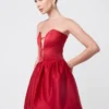 Corset mini dress crafted from structured fabric that holds its shape. Features a soft curved neckline, corset bodice with lace-up back, and zipper at the back for an adjustable fit.