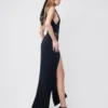 Floor-length sleeveless dress crafted from stretch matte jersey.